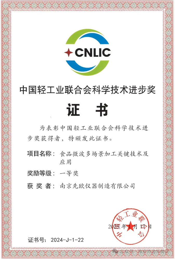南京先歐儀器制造有限公司憑借其自主研發(fā)的食品微波多場景加工關鍵技術及應用項目,成功斬獲中國輕工業(yè)聯(lián)合會科學技術進步獎 [一等獎]。這一殊榮是對南京先歐儀器在科學儀器領域持續(xù)創(chuàng)新、技術攻堅成果的權威肯定,標志著公司在推動輕工行業(yè)技術進步方面邁出了堅實一步。